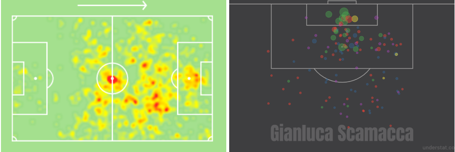 These are not isolated instances; he is frequently spotted attempting to pull it off from ridiculous ranges and angles, catching the keeper off guard. At 23 years old, the frontman has plenty of time to polish his all-around game, but his ability outside the box is nothing to be sniffed at. In fact, Scamacca is actually a much more versatile player than people think, with excellent ball retention, hold-up play and defensive work.