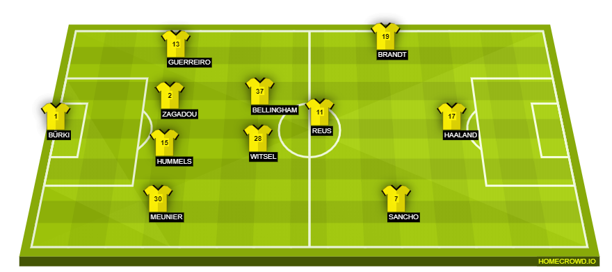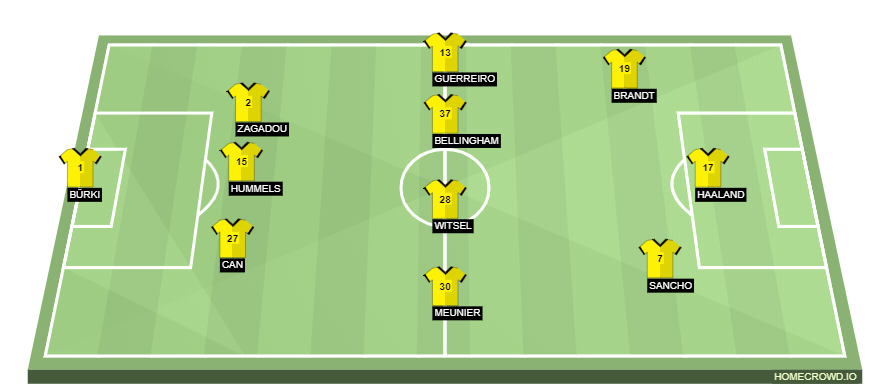 Bellingham could be supported by the double-pivot consisting of Emre Can and Axel Witsel. These two are excellent when it comes to providing the composer and solidity. And especially against a lower-end team, who like to defend in deep blocks, the new signing could enjoy a lot of freedom in the final third.