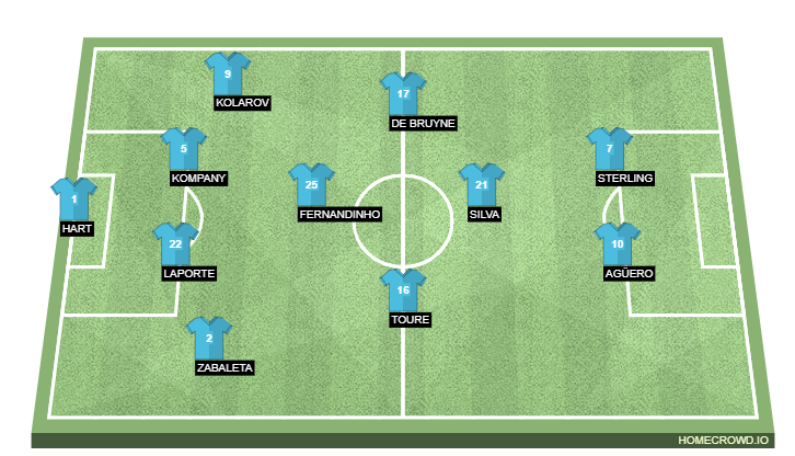 Manchester City Team of the Decade (4-4-2): Joe Hart, Pablo Zabaleta, Vincent Kompany, Aymeric Laporte, Aleksandar Kolarov, Fernandinho, Toure, Kevin De Bruyne, David Silva, Sergio Aguero, Raheem Sterling.