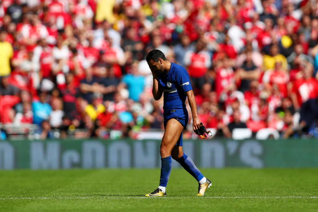 Pedro was shown a red card during the Community Shield meeting between Chelsea and Arsenal as the Gunners galloped to a victory on penalties