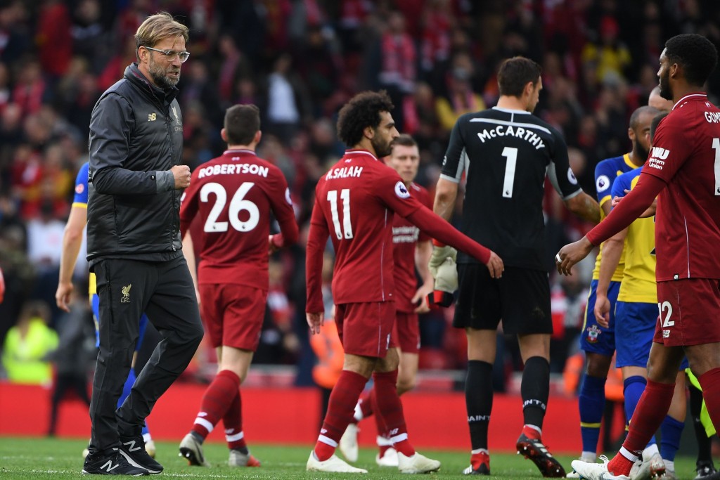 An own goal from Southampton defender Wesley Hoedt just ten minutes into the game put the home side in front before Joel Matip, starting his first game of the season, headed home the second ten minutes later. Star man Mohamed Salah then scored his first goal in three matches, turning the ball home after Xherdan Shaqiri’s free-kick hit the bar.