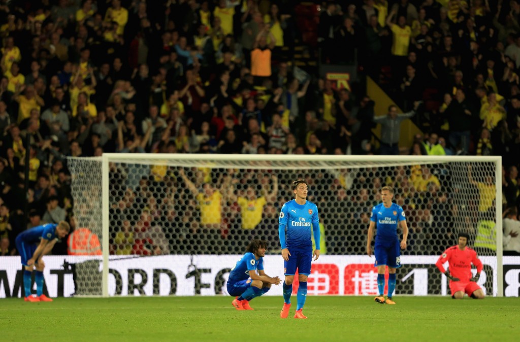 Arsenal continue looking for their first away league win of the season as they squandered a slender one-goal lead in controversial fashion to lose 2-1 to Watford on Saturday.