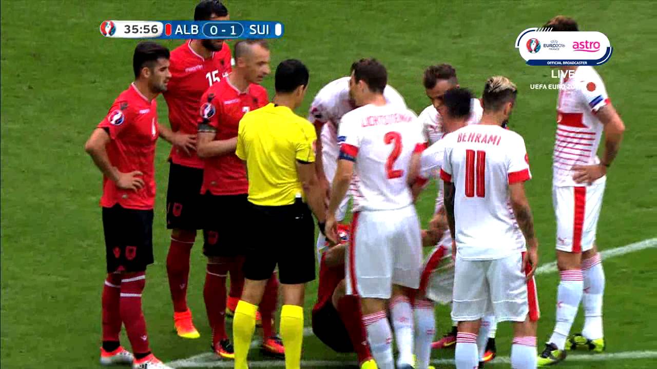 In spite of going down to 10 men in the first half, Albania kept on troubling their Swiss counterparts. Switzerland defender Fabian Schar snatched the lead as early as the fifth minute as he headed in a Xherdan Shaqiri corner. Things went from bad to worse for Albania, as their captain Lorik Cana received a second booking for handling the ball close to the Albanian penalty area.