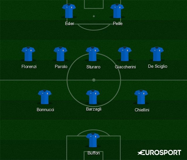 Predicted Starting XI (3-5-2): Buffon, Bonnucci, Barzagli, Chiellini, Florenzi, Sturaro, Parolo, Giaccherini, De Sciglio, Pelle, Eder