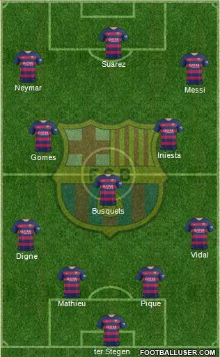 Possible Starting XI (4-3-3): ter Stegen, Vidal, Pique, Mathieu, Digne; Iniesta, Busquets, Gomes; Messi, Suarez, Neymar