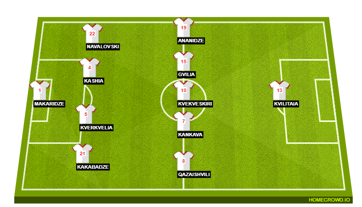 Possible Starting XI (4-5-1): Makaridze; Kakabadze, Kverkvelia, Kashia, Navalovski; Qazaishvili, Kankava, Kvekveskiri, Gvilia, Ananidze; Kvilitaia