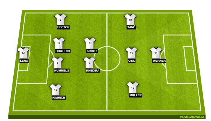 Probable Starting Lineup (4-2-3-1): ter Stegen; Kimmich, Hummels, Boateng, Hector; Khedira, Kroos; Muller, Ozil, Sane; Werner