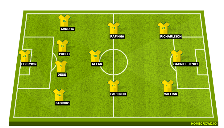 Probable Lineup (4-3-3): Ederson; Fabinho, Dede, Pablo, Sandro; Paulinho, Allan, Rafinha; Willian, Jesus, Richarlison