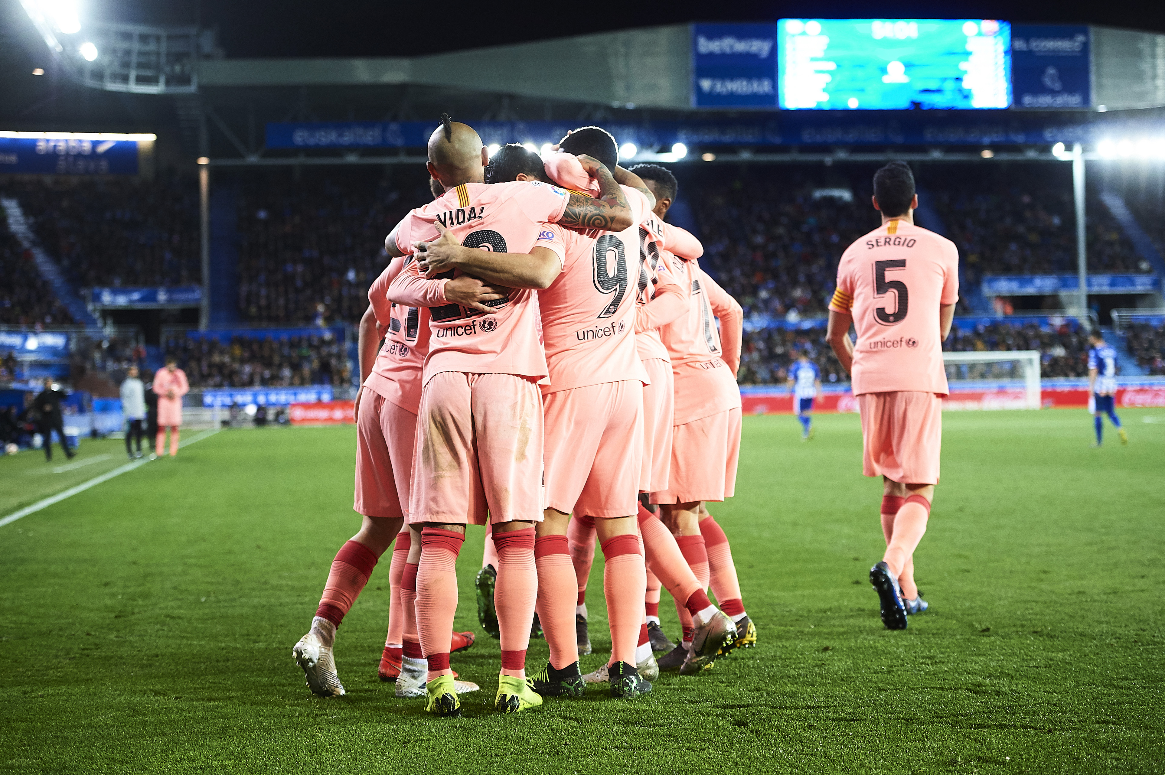 The party has begun at Barcelona, who are now just one win away from winning the La Liga title again after beating Deportivo Alaves 2-0 on Tuesday.