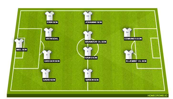 Probable Lineup (4-4-2): Nielsen; Davidsen, Gregersen, Vatnsdal, Eriksen; Sorensen, Hannson, Brandur Olsen, Johannesen; Klaemint Olsen, Edmundsson