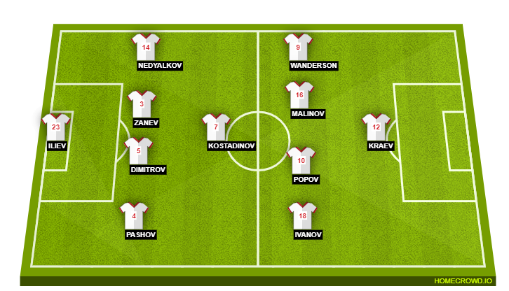 Probable Lineup (4-1-4-1): Iliev; Pashov, Dimitrov, Zanev, Nedyalkov; Kostadinov; Ivanov, Popov, Malinov, Wanderson; Kraev