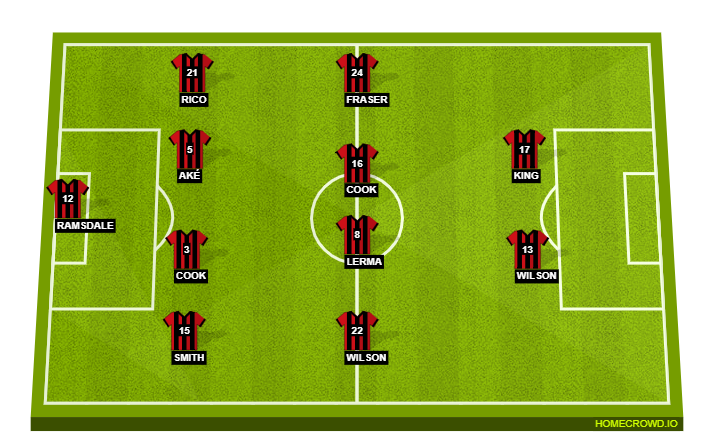 Probable Lineup (4-4-2): Ramsdale; Smith, Steve Cook, Ake, Rico; Harry Wilson, Lerma, Lewis Cook, Fraser; Callum Wilson, King