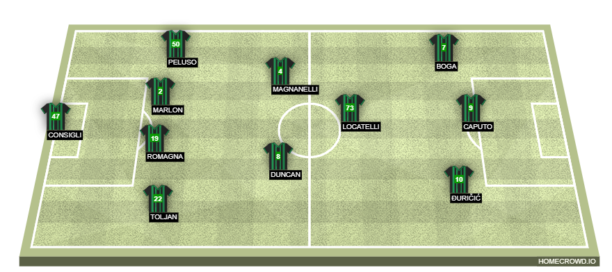 Predicted Lineup (4-3-3): Consigli; Toljan, Romagna, Marlon, Peluso; Duncan, Locatelli, Magnanelli; Djuricic, Caputo, Boga