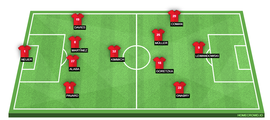 Probable Lineup (4-1-4-1): Neuer; Pavard, Martinez, Alaba, Davies; Kimmich; Gnabry, Goretzka, Muller, Coman; Lewandowski
