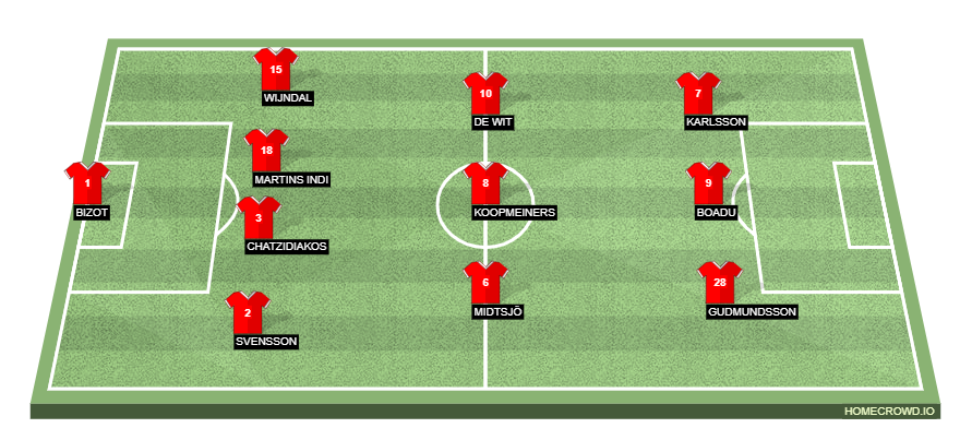 Probable Lineup (4-3-3): Bizot; Svensson, Chatzidiakos, Martins Indi, Wijndal; Midtso, Koopmeiners, De Wit; Gudmundsson, Boadu, Karlsson.