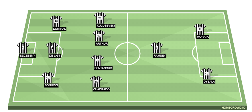Probable Lineup (3-4-1-2): Szczesny; Bonucci, de Ligt, Demiral; Cuadrado, Bentancur, Arthur, Kulusevski; Ramsey; Dybala, Morata.