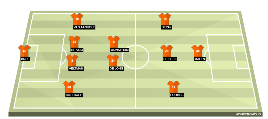 Probable Lineup (4-2-3-1): Krul; Hateboer, Veltman, De Vrij, van Aanholt; de Jong, Wijnaldum; Promes, van de Beek, Depay; Malen