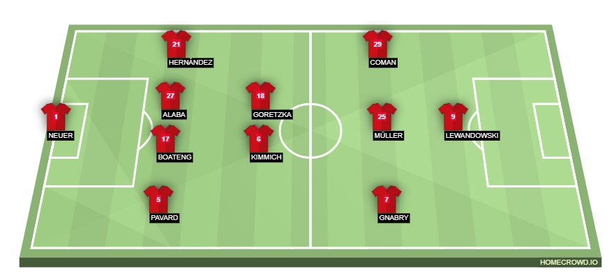 Probable Lineup (4-2-3-1): Neuer; Pavard, Boateng, Alaba, Hernandez; Kimmich, Goretzka; Gnabry, Muller, Coman; Lewandowski