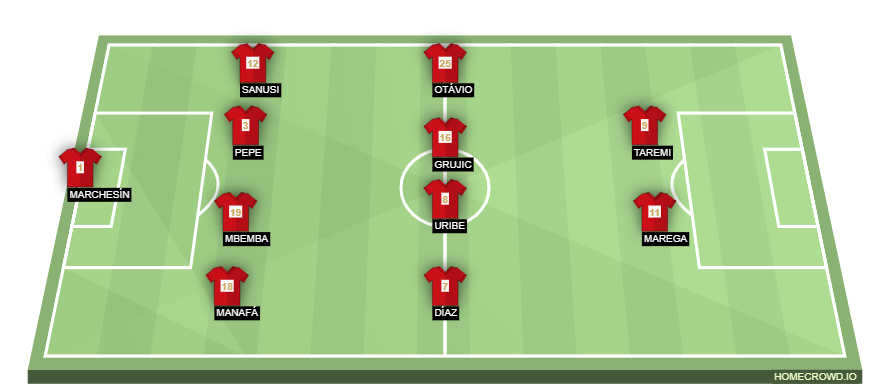 Probable Lineup (4-4-2): Marchesin; Manafa, Mbemba, Pepe, Sanusi; Diaz, Uribe, Oliveira, Otavio; Marega, Taremi