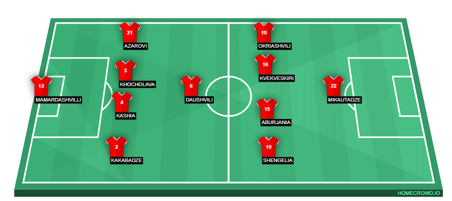 Probable Lineup (4-1-4-1): Mamardashvilli; Kakabadze, Kashia, Khocholava, Azarovi; Daushvilli; Shengelia, Aburjania, Kvekveskiri, Okriashvilli; Mikautadze