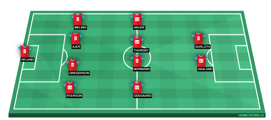 Probable Lineup (4-4-2): Nyland; Ryerson, Gregerson, Ajer, Meling; Odegaard, Thorsby, Normann, Hauge; Haaland, Sorloth