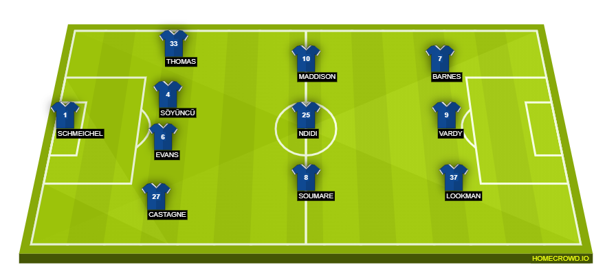 Probable Lineup (4-3-3): Schmeichel; Castagne, Evans, Soyuncu, Thomas; Soumare, Ndidi, Maddison; Lookman, Vardy, Barnes