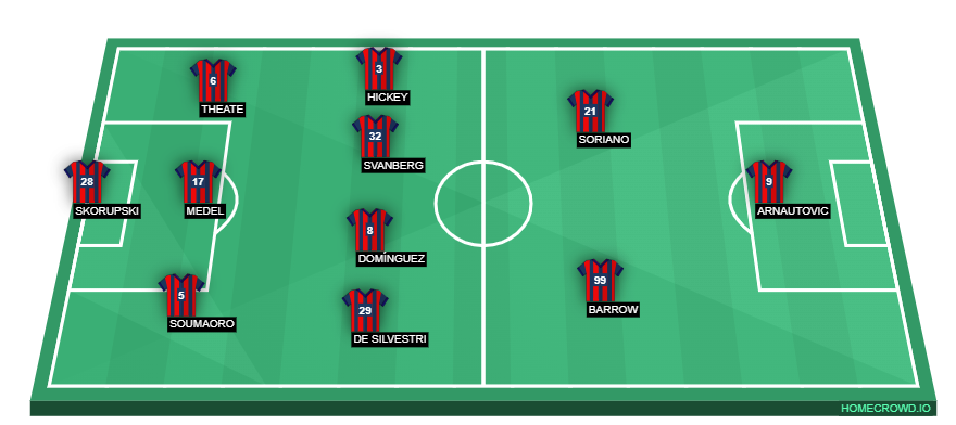 Probable Lineup (3-4-2-1): Skorupski; Soumaoro, Medel, Theate; De Silvestri, Dominguez, Svanberg, Hickey; Soriano, Barrow; Arnautovic.