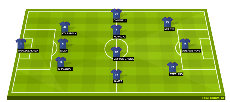 Probable Lineup (3-4-3): Kepa; Chalobah, Silva, Koulibaly; James, Loftus-Cheek, Kovacic, Chilwell; Sterling, Aubameyang, Mount