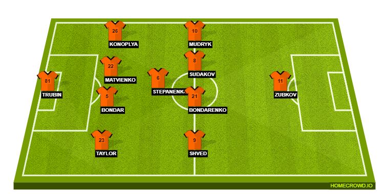 Probable Lineup (4-1-4-1): Trubin; Taylor, Bondar, Matviyenko, Konoplya; Stepanenko; Shved, Bondarenko, Sudakov; Mudryk; Zubkov