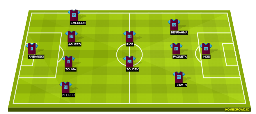 Probable Lineup (4-2-3-1): Fabianski; Kehrer, Zouma, Aguerd, Emerson; Soucek, Rice; Bowen, Paqueta, Benrahma; Ings