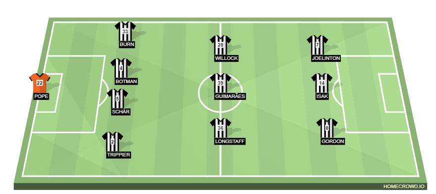 Probable Lineup (4-3-3): Pope; Trippier, Schar, Botman, Burn; Joelinton, Guimaraes, Willock; Gordon, Isak, Joelinton
