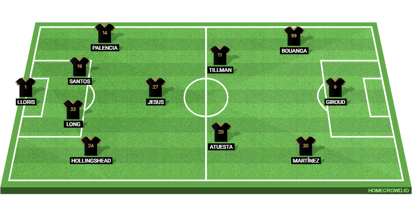 Probable Lineup (4-1-2-3): Lloris; Hollingshead, Long, Santos, Palencia; Igor Jesus; Delgado, Tillman; Martínez, Giroud, Bouanga