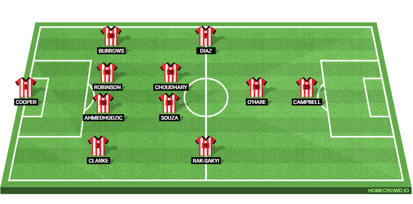 Probable Lineup (4-2-3-1): Cooper; Clarke, Ahmedhodzic, Robinson, Burrows; Vini Souza, Choudhury; Rak-Sakyi, O’Hare, Brereton Diaz; Campbell