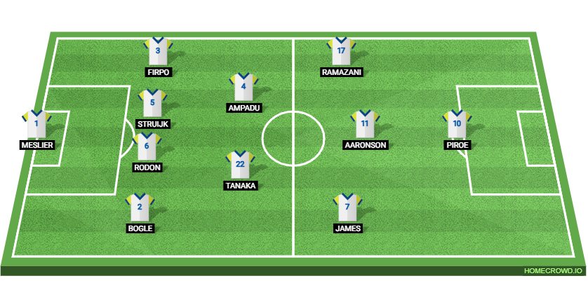 Probable Lineup (4-2-3-1): Meslier; Bogle, Rodon, Struijk, Firpo; Ampadu, Tanaka; James, Aaronson, Ramazani; Piroe