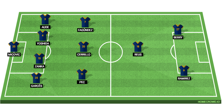 Probable Lineup (4-3-1-2): Micovic; Garces, Zanka, Yoshida, Aude; Pec, Cerrillo, Fagundez; Reus; Ramirez, Berry