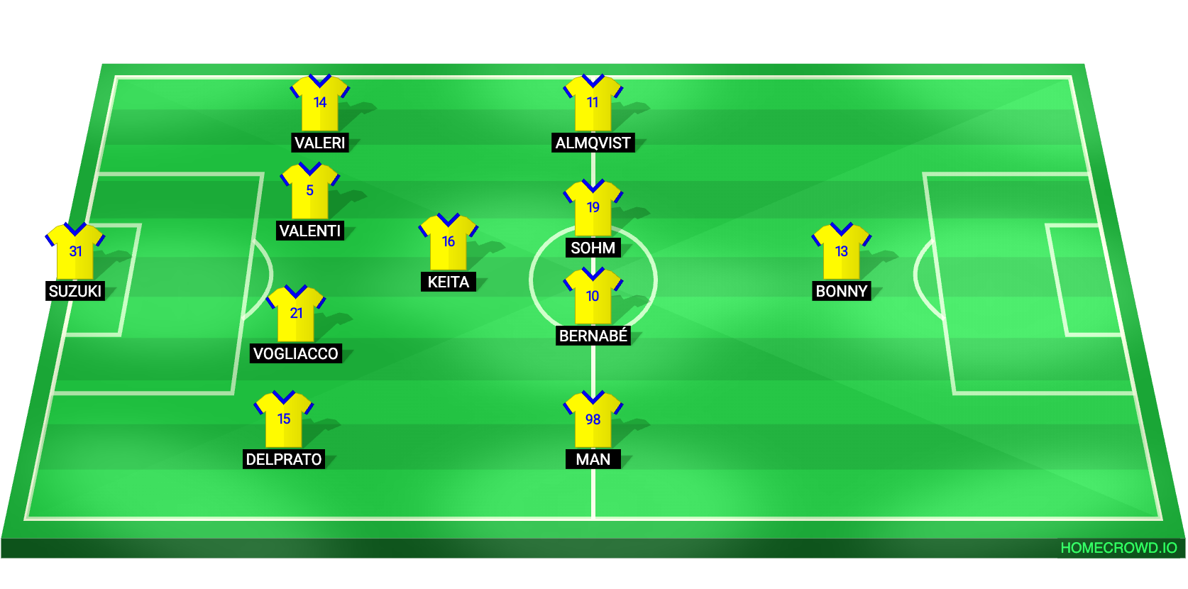 Probable Lineup (4-1-4-1): Suzuki; Delprato, Vogliacco, Valenti, Valeri; Keita; Man, Bernabe, Sohm, Almqvist; Bonny