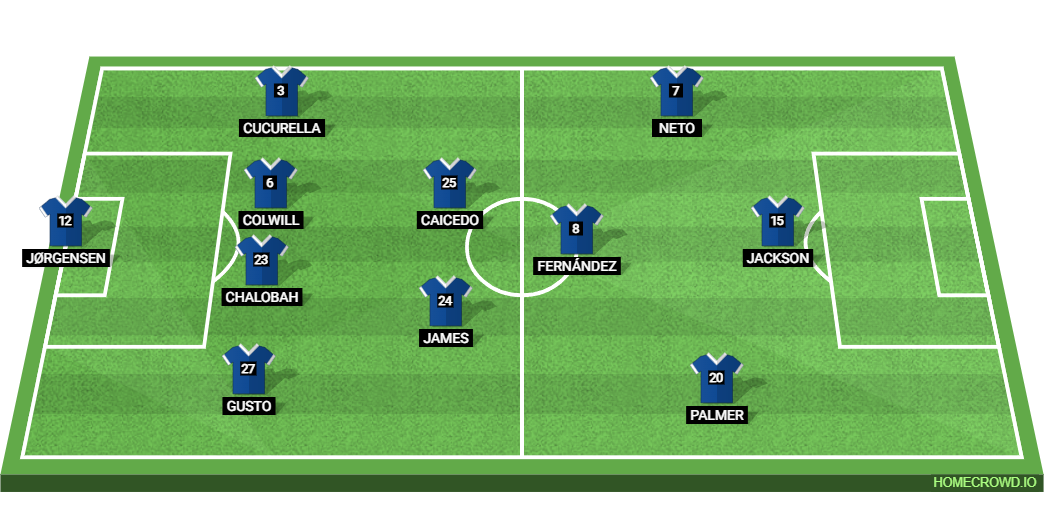 Probable Lineup (4-2-3-1): Jorgensen; Gusto, Chalobah, Colwill, Cucurella; James, Caicedo; Palmer, Enzo Fernandez, Neto; Jackson