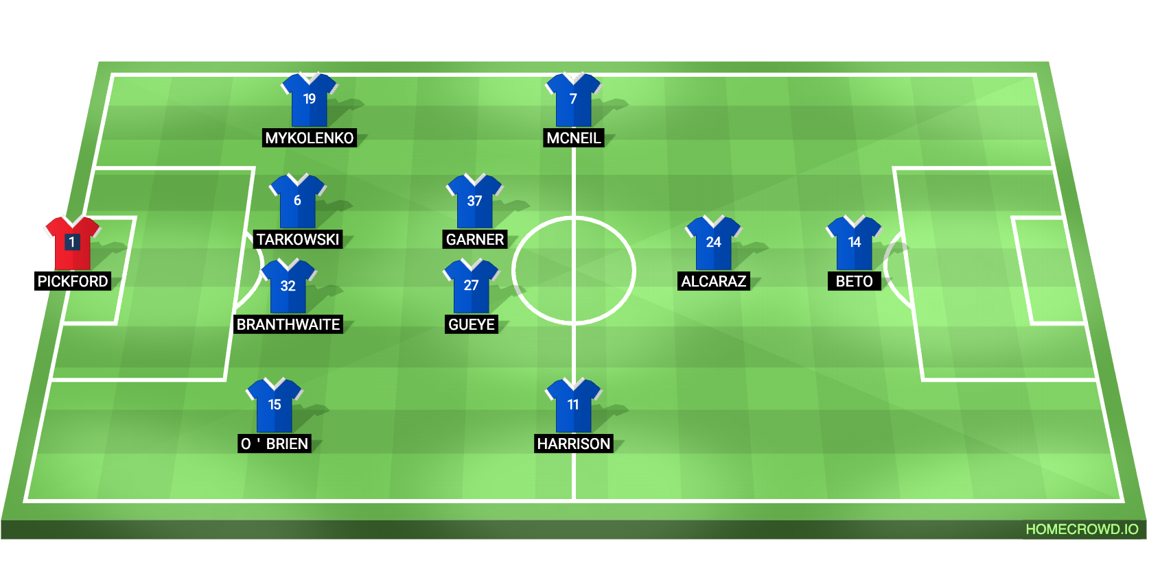 Probable Lineup (4-4-1-1): Pickford; O’Brien, Tarkowski, Branthwaite, Mykolenko; Harrison, Garner, Gueye, McNeil; Alcaraz; Beto