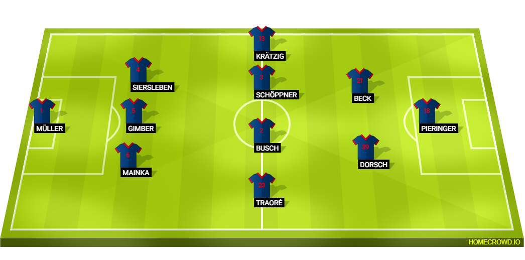 Probable Lineup (3-4-2-1): Muller; Mainka, Gimber, Siersleben; Traore, Busch, Schoppner, Kratzig; Dorsch, Beck; Pieringer