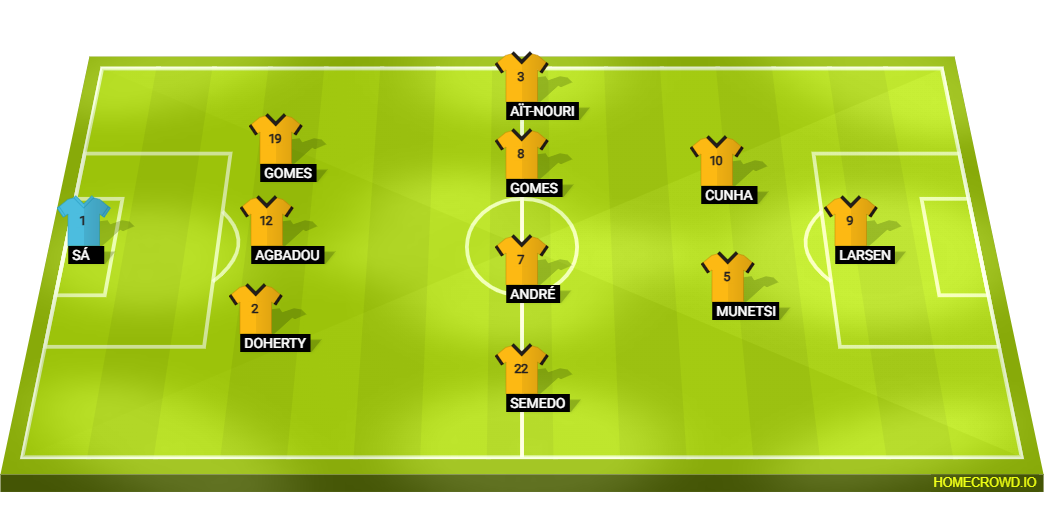 Probable Lineup (3-4-2-1): Sa; Doherty, Agbadou, Toti Gomes; Semedo, Andre, Joao Gomes, Ait-Nouri; Munetsi, Cunha; Strand Larsen