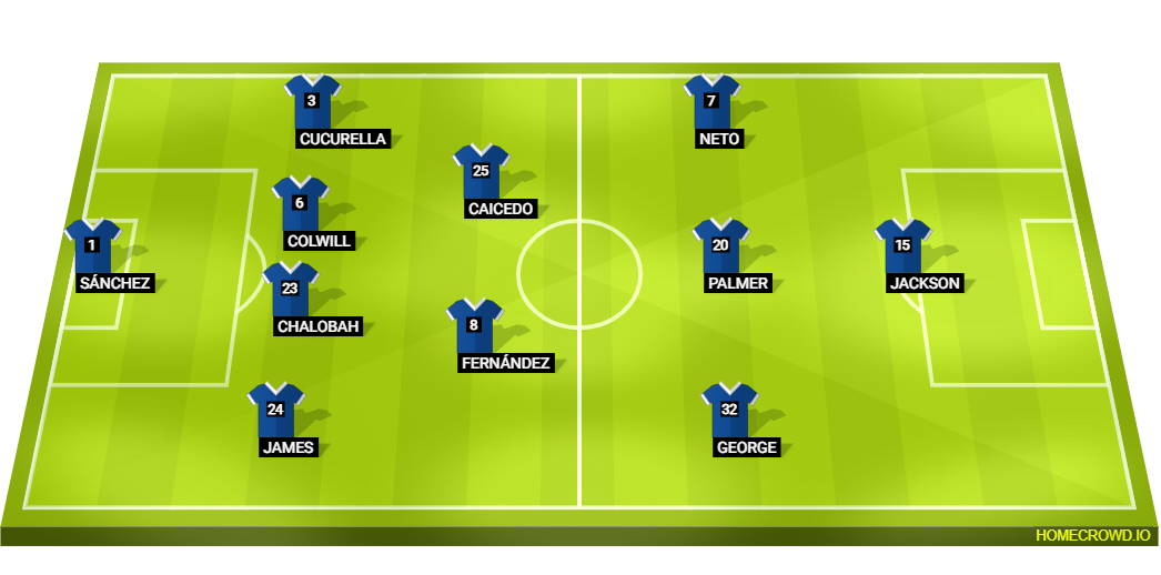 Probable Lineup (4-2-3-1): Sanchez; James, Chalobah, Colwill, Cucurella; Enzo, Caicedo; George, Palmer, Neto; Jackson