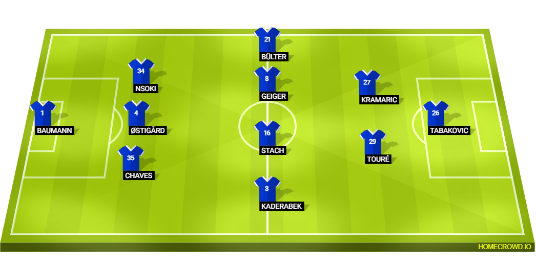 Probable Lineup (3-4-2-1): Baumann; Chaves, Ostigard, Nsoki; Kaderabek, Stach, Geiger, Bulter; Toure, Kramaric; Tabakovic