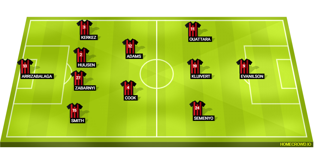 Probable Lineup (4-2-3-1): Kepa; Smith, Zabarnyi, Huijsen, Kerkez; Cook, Adams; Semenyo, Kluivert, Ouattara; Evanilson