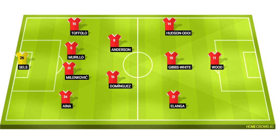Probable Lineup (4-2-3-1): Sels; Aina, Milenkovic, Murillo, Toffolo; Dominguez, Anderson; Elanga, Gibbs-White, Hudson-Odoi; Wood
