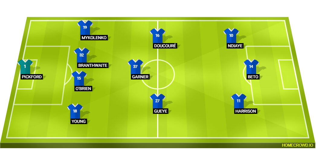 Probable Lineup (4-3-3): Pickford; Young, O’Brien, Branthwaite, Mykolenko; Gueye, Garner, Doucoure; Harrison, Beto, Ndiaye