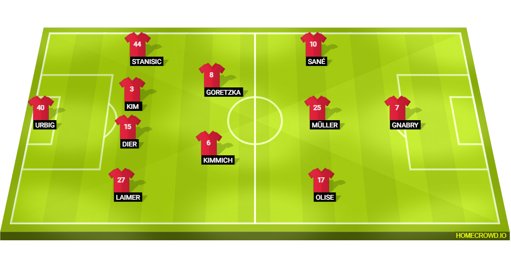 Probable Lineup (4-2-3-1): Urbig; Laimer, Dier, Kim, Stanisic; Kimmich, Goretzka; Olise, Muller, Sane; Gnabry