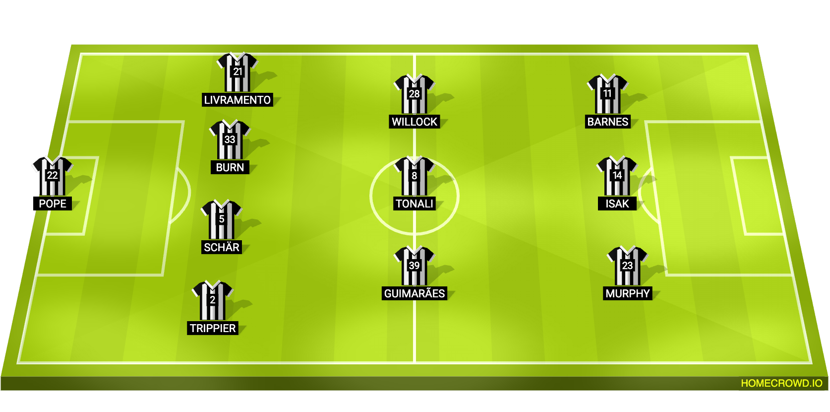 Probable Lineup (4-3-3): Pope; Trippier, Schar, Dan Burn, Livramento; Guimaraes, Tonali, Willock; Murphy, Isak, Barnes