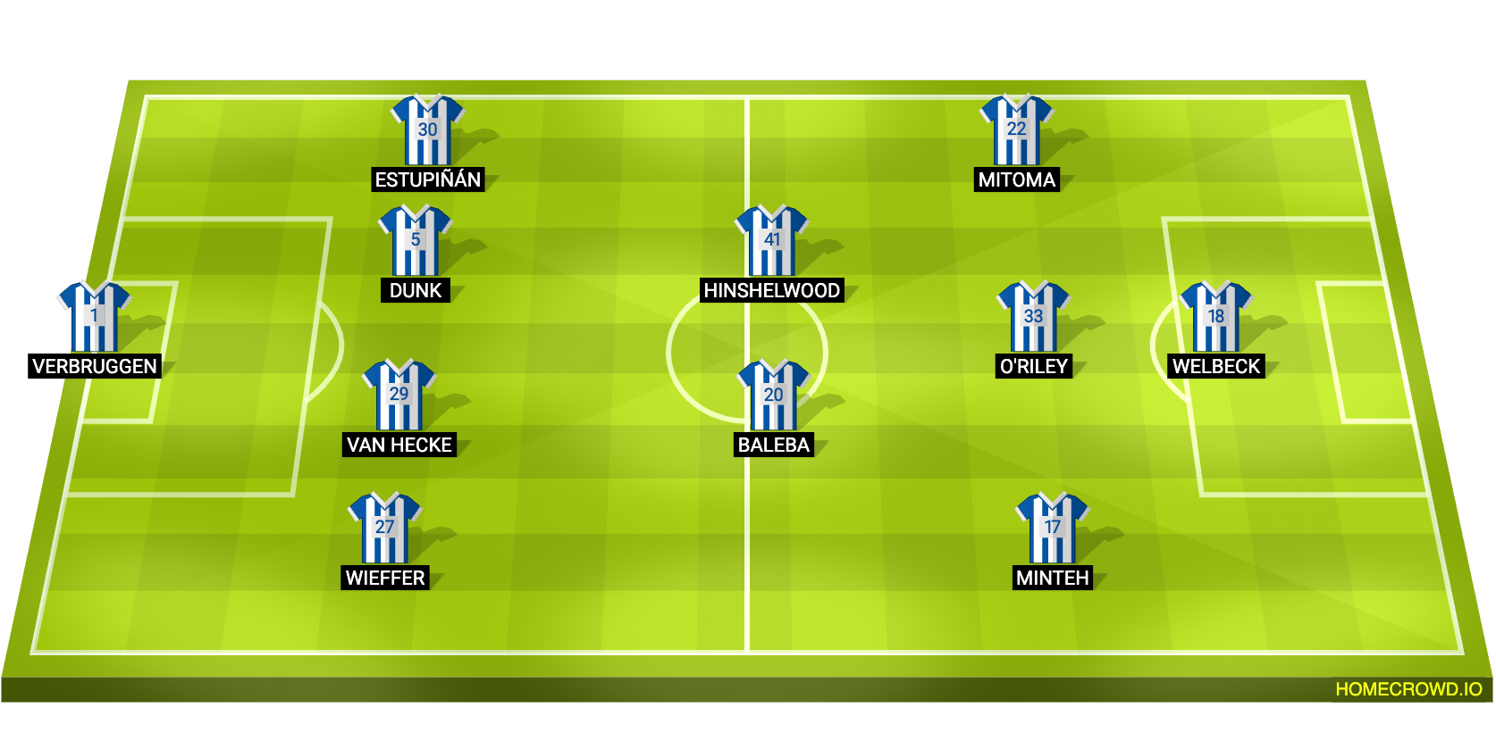 Probable Lineup (4-2-3-1): Verbruggen; Wieffer, Van Hecke, Dunk, Estupinan; Baleba, Hinshelwood; Minteh, O’Riley, Mitoma; Welbeck