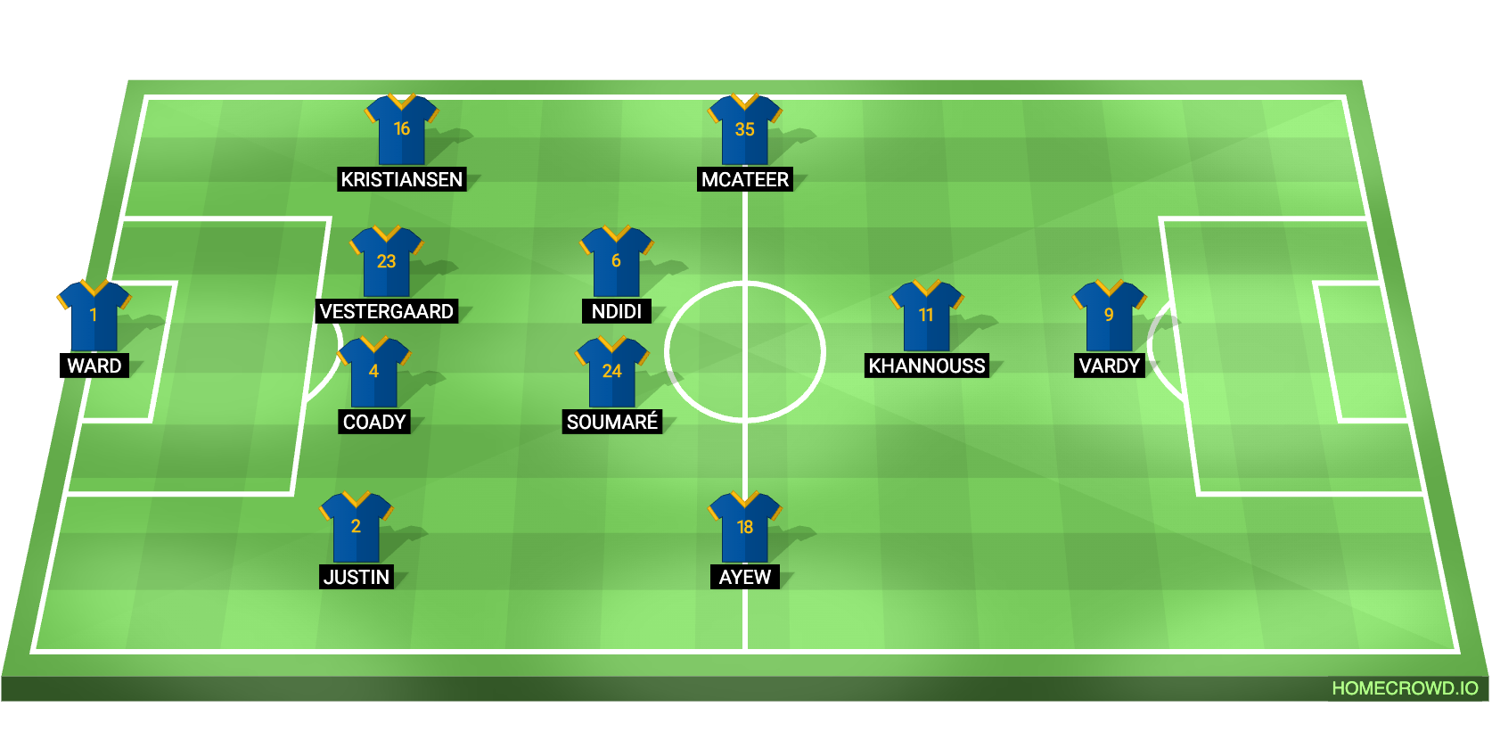 Probable Lineup (4-2-3-1): Ward; Justin, Vestergaard, Coady, Kristiansen; Ndidi, Soumare; Ayew, El Khannouss, McAteer; Vardy
