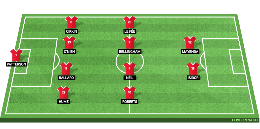 Probable Lineup (4-4-2): Patterson; Hume, Ballard, O’Nien, Cirkin; Roberts, Neil, Bellingham, Le Fee; Mayenda, Isidor